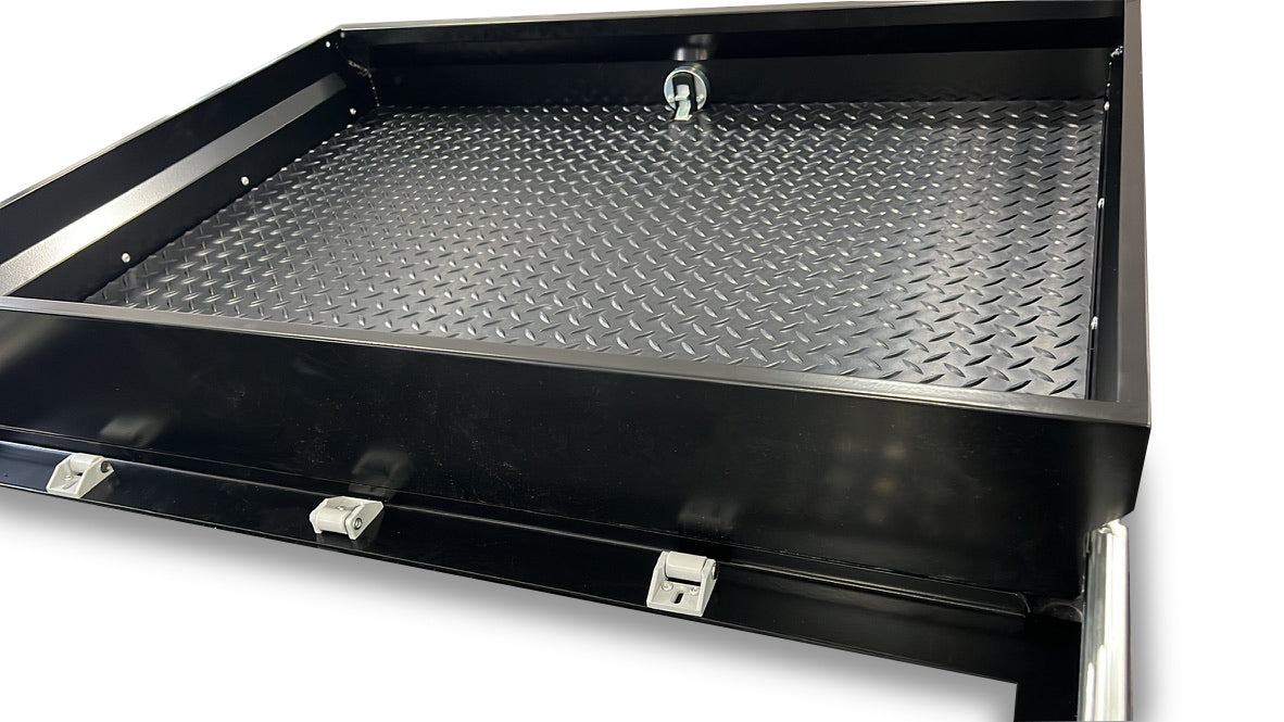 Unique low profile rubber rollers allow the drawer to sit low to the deck and support upto 100kg whilst maintain precision ride height for the slam latch.