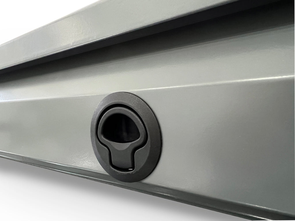 The High-Quality VW California SpaceMate Optional Metal Black (Rattle Free) Flush Pull Latch offers a durable, sleek upgrade for your SpaceMate. Crafted from high-quality alloys with a modern black finish, it ensures a rattle-free experience, eliminating unwanted noise even on rough roads. Its flush design provides a clean, minimalist look while offering easy access to storage, making it the perfect blend of style and practicality for your VW California.